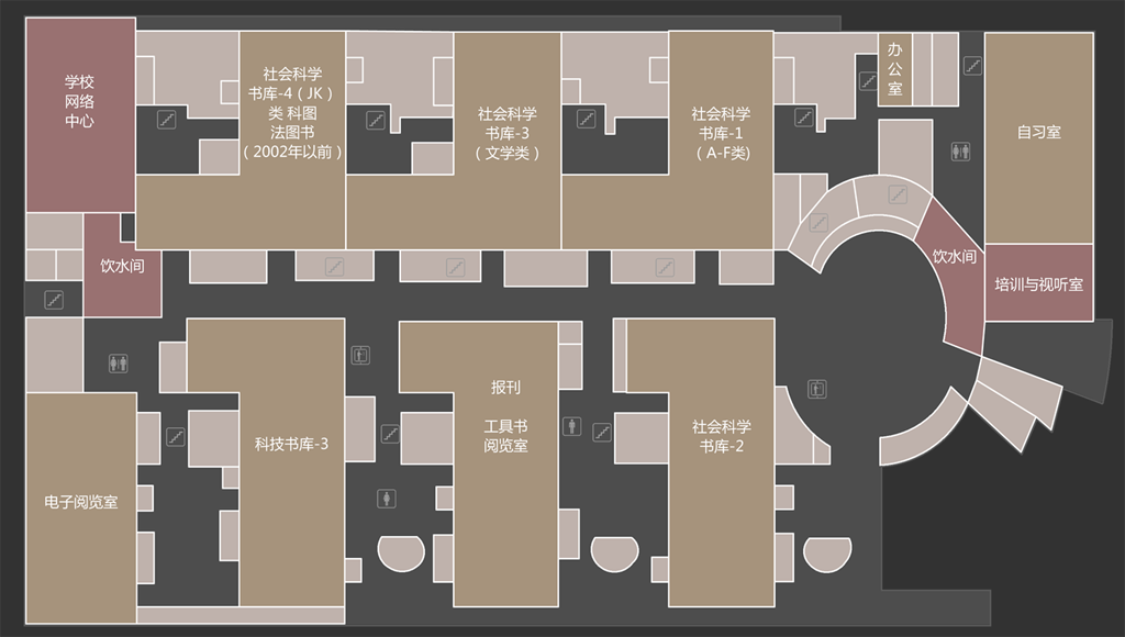 南校区图书馆地上建筑面积4万平方米,总框架五层,地下一层,地面四层。