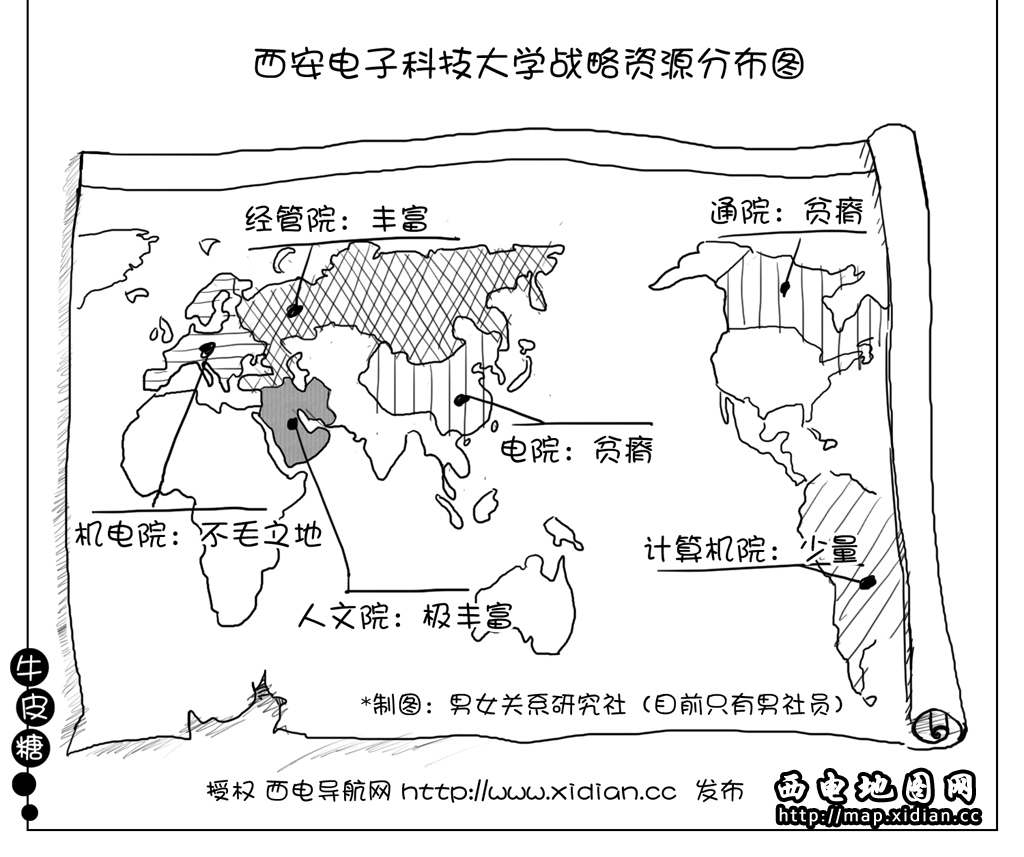 本图作者牛皮糖,也是西电一位大才子,出过一本漫画《大学生活那点事》,据传闻是史上大学校长都害怕学生看的大作。最具漫画家气质的理工男展示别样大学生活。这里的大学,自然是指西安电子科技大学。